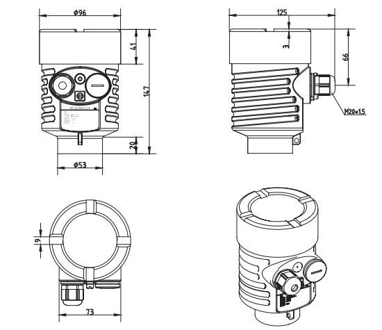 SKD54A高溫喇叭天線(xiàn)雷達(dá)物位計(jì)外形尺寸圖
