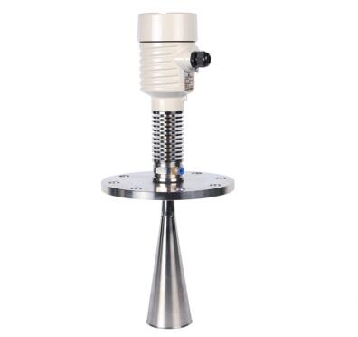 SKD54A高溫喇叭天線(xiàn)雷達(dá)物位計(jì) SKD54A高溫喇叭天線(xiàn)雷達(dá)物位計(jì)傳感器是雷達(dá)式物位測(cè)量?jī)x表測(cè)量距離最大35米,可以用于存儲(chǔ)罐、中間緩沖罐或過(guò)程容器的物位測(cè)量,輸出4~20mA疊加HART信號(hào)。 輸入 高溫喇叭天線(xiàn)雷達(dá)物位計(jì)天線(xiàn)接收反射的微波脈沖并將其傳輸給電子線(xiàn)路,微處理器對(duì)此信號(hào)進(jìn)行處理,識(shí)別出微脈沖在物料表面所產(chǎn)生的回波。正確的回波信號(hào)識(shí)別由智能軟件完成,精度可達(dá)毫米級(jí)。距離物料表面的距離D與脈沖的時(shí)間行程T成正比:D=C×T/2(其中C為光速) 因空罐的距離E已知,則物位L為:L=E-D 輸出 通過(guò)輸入空罐高度E(=零點(diǎn)),滿(mǎn)罐高度F(=滿(mǎn)量程)及一些應(yīng)用參數(shù)來(lái)設(shè)定,應(yīng)用參數(shù)將自動(dòng)使儀表適應(yīng)測(cè)量環(huán)境。對(duì)應(yīng)于4~20mA輸出。 高溫喇叭天線(xiàn)雷達(dá)物位計(jì)參數(shù) 應(yīng) 用:適用于高爐料位,較厚罐頂?shù)膬?chǔ)罐和安裝短管較高的工況測(cè)量 測(cè)量范圍:35米 過(guò)程連接:萬(wàn)向法蘭 介質(zhì)溫度:-40~500℃ 過(guò)程壓力:常壓 精 度:±15mm 頻率范圍:6GHz 防爆等級(jí):Exb IIBT4 Gb 防護(hù)等級(jí):IP67 信號(hào)輸出:4~20mA/HART(兩線(xiàn)) SKD54A高溫喇叭天線(xiàn)雷達(dá)物位計(jì)外型尺寸圖 ![]() SKD54A高溫喇叭天線(xiàn)雷達(dá)物位計(jì)安裝圖 ![]() SKD54A高溫喇叭天線(xiàn)雷達(dá)物位計(jì)選型