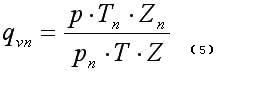 式中,qVn、qV分別為標準狀態下(0℃或20℃,101.325kPa)和工況下的體積流量; Pn、P分別為標準狀態下和工況下的絕對壓力;Tn、T分別為標準狀態下和工況下的熱力學溫度;Zn、Z分別為標準狀態下和工況下氣體壓縮系數。