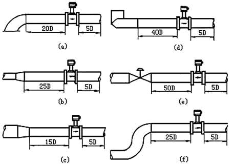 渦街流量計必須保證上、下游直管段有必要的長度(見圖5)。