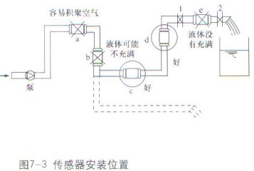 智能電磁流量計傳感器正確安裝位置 智能電磁流量計傳感器安裝方向可水平、垂直或傾斜。因為流量計在工作時,始終要求測量管內(nèi)充滿被測介質(zhì)。水平安裝時,為了確保這一點,必要時傳感器安裝位置的標高可以略低于管道的標高,如圖7-1,或使傳感器的下游具有足夠的背壓,如圖7-2。