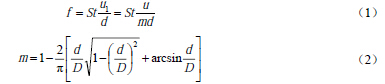 1.引言 渦街流量計(jì)(或稱旋渦流量計(jì))是一種基于流體振蕩原理的新型速度式流量儀表。它的輸出信號是與流量成正比的脈沖頻率信號或標(biāo)準(zhǔn)電流信號,可遠(yuǎn)距離傳輸,并且輸出信號僅與流量有關(guān),不受流體的溫度、壓力、成分、粘度和密度的影響。它具有量程比寬,結(jié)構(gòu)簡單,無運(yùn)動件,檢測元件不接觸被測流體,具有測量精度好、應(yīng)用范圍廣、使用壽命長等特點(diǎn)。因此,渦街流量計(jì)自20世紀(jì)60年代末誕生以來,發(fā)展異常迅速,許多研究者進(jìn)行了大量的工作,開發(fā)出了眾多類型的渦街流量計(jì),并大量生產(chǎn)投放市場,像這樣在短短幾年時間內(nèi)就達(dá)到從實(shí)驗(yàn)室樣機(jī)到批量生產(chǎn)過程的流量計(jì)還是僅有的。 然而,在經(jīng)歷了20世紀(jì)80~90年代的“渦街熱”以后,渦街流量計(jì)的發(fā)展放慢了步伐。由于對這種新型儀表的生產(chǎn)、設(shè)計(jì)、選型和應(yīng)用方面的經(jīng)驗(yàn)不足,面對各行各業(yè)千差萬別的現(xiàn)場和測量對象,有些問題逐步暴露出來,如安裝條件和方式對測量的影響等。對于安裝條件(即各種使用條件下所必須的直管段長度)的要求,不同儀表廠家都會給出一個比較合理的建議值。但是,對于安裝方式(即流量計(jì)水平安裝或垂直安裝)給渦街流量計(jì)造成的影響,一般都沒有涉及。本文通過相同條件下的實(shí)驗(yàn)研究,定量地討論和比較了水平、垂直兩種安裝方式對渦街流量計(jì)測量的影響。 2.渦街流量計(jì)測量原理 在流體中垂直于流向插入一根非流線型柱狀物體(即旋渦發(fā)生體),當(dāng)流速大于一定值時,在柱狀物兩側(cè)將產(chǎn)生兩排旋轉(zhuǎn)方向相反、交替出現(xiàn)的非對稱的旋渦列(即卡門渦街),如圖1所示,通過檢測渦街產(chǎn)生的頻率,根據(jù)有關(guān)的關(guān)系式得到流體的流量。 設(shè)旋渦的發(fā)生頻率為f,被測介質(zhì)來流的平均速度為u,旋渦發(fā)生體迎面寬度為d,管道內(nèi)徑為D,根據(jù)卡門渦街原理,有如下關(guān)系式: 式中u1為旋渦發(fā)生體兩側(cè)的平均流速,m/s;St為斯特勞哈爾數(shù),量綱為1;m為旋渦發(fā)生體兩側(cè)弓形面積與管道橫截面面積之比,量綱為1。 管道內(nèi)流體的體積流量qv為: 式中K為渦街流量計(jì)的儀表系數(shù),Hz/(m3/h)。 式(3)就是渦街流量計(jì)測量的基本關(guān)系式,其中K除與旋渦發(fā)生體、管道的幾何尺寸有關(guān)外,還與斯特勞哈爾數(shù)有關(guān)。斯特勞哈爾數(shù)為無量綱參數(shù),它與旋渦發(fā)生體形狀及雷諾數(shù)有關(guān),在ReD = 2×104 ~ 7×106范圍內(nèi),St可視為常數(shù),這是儀表正常工作范圍。同時可以看到,渦街流量計(jì)輸出的脈沖頻率信號不受流體物性和組分變化的影響,即儀表系數(shù)在一定雷諾數(shù)范圍內(nèi)僅與旋渦發(fā)生體及管道的形狀尺寸等有關(guān)。 3. 渦街流量計(jì)的安裝方式 在工程實(shí)際應(yīng)用中,渦街流量計(jì)通常有如圖2所示的幾種安裝方式[10],其中(a)、(b)、(c)三種方式都屬于水平安裝;(d)則為渦街流量計(jì)的垂直安裝。對不同的流體應(yīng)采用不同的安裝方式。普通液體、氣體、含水量液體的氣體、低溫氣體和液體、含微量固體顆粒的液體和氣體等可采用(a)、(c)、(d)方式安裝;高溫液體、高溫氣體、蒸汽可采用(b)、(c)、(d)方式安裝;濕飽和蒸汽可采用(a)、(c)、(d)方式安裝;液-氣(含微量氣體)、液-固(含微量固體)和液-液兩項(xiàng)流中,如果氣、固相不超出可測量范圍,建議首先采用(d)方式安裝。 4. 實(shí)驗(yàn)及結(jié)果討論 4.1 實(shí)驗(yàn)裝置與過程 實(shí)驗(yàn)裝置結(jié)構(gòu)如圖3所示,水穩(wěn)壓罐為管路提供恒定的水壓,使實(shí)驗(yàn)時流量穩(wěn)定,水流量的大小由調(diào)節(jié)閥來調(diào)節(jié),流量范圍為2~20 m3/h。電磁流量計(jì)作為標(biāo)準(zhǔn)流量表給出進(jìn)入實(shí)驗(yàn)段的水的標(biāo)準(zhǔn)流量值,精度為0.5%。渦街流量計(jì)分別按照水平和垂直兩種方式安裝在實(shí)驗(yàn)管路中,它們都具有足夠長的前、后直管段長度,并且其它安裝條件都嚴(yán)格按照規(guī)定的要求。渦街流量計(jì)的信號通過示波器采集,采樣頻率選用1000 Hz,每組數(shù)據(jù)包含2500點(diǎn)。 4. 2 實(shí)驗(yàn)結(jié)果與分析 分別對在水平和垂直兩種安裝方式時測得的渦街信號進(jìn)行快速傅里葉變換(FFT),可以得到渦街頻率值,圖4給出了渦街頻率與流量之間的關(guān)系。從圖中可以看出,兩者之間的差別很小。再分別對測得的渦街率與流量做零截距最小二乘擬合,得到水平、垂直安裝的渦街流量計(jì)儀表系數(shù)分別為2.5202 Hz/(m3/h)和2.5198 Hz/(m3/h),相對誤差小于0.02%。可見,在安裝方式對渦街流量計(jì)的測量影響很小,可以忽略。 為了進(jìn)一步研究渦街流量計(jì)安裝方式的影響,本文還比較了在水平和垂直兩種方式下的渦街信號的幅度。圖5給出了渦街信號幅度與流量之間的關(guān)系,可以看出信號幅度都與流量成近似二次方關(guān)系,在相同流量下,信號幅度基本上相等,這說明渦街流量計(jì)安裝方式對其信號幅度影響很小,也即旋渦的能量(正比于幅度的平方)幾乎不受影響。但是,仔細(xì)比較可以發(fā)現(xiàn),渦街流量計(jì)水平安裝時的信
