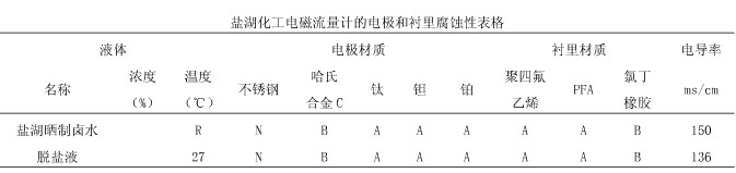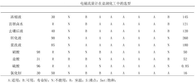 鋰業公司為鹽湖化工企業,主要生產碳酸鋰硼酸、鉀肥等鹽湖化工產品,原料為曬制鹵水,此鹽湖屬硫酸亞性高鎂鋰比鹽湖,在鹽湖化工生產中產品齊全,也具有代表性。根據鹽湖化工原料特性,闡述電磁流量計選型。鹽湖化工原理的特點為電導率高(平均在150ms/cm),強腐蝕,易結晶。生產過程中所需要的輔料主要強酸、強堿。生產車間的管道都為防腐塑料材質,生產環境溫度最高為90℃,最低為-30℃。鑒于以上工況,在鹽湖化工中電磁流量計比其他流量計具有精度高、壽命長、維護方便、性價比高的有點,在鹽湖化工中主要在反應釜的定比例投放、貿易計量、體積計量等方面。