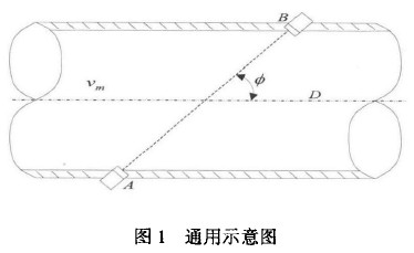 標準表法在線校準是在大口徑電磁徑流量計所在管道上串聯一個精度較高的外夾式超聲流量計作為標準表,對在線的電磁流量計和前后連接管道、介質流動狀態等組成的流量測量系統的整體校準。使流體在相同的時間間隔內連續通過標準表和被校流量計,記錄被檢表和標準表的流量值,以標準表示值作為標準值,計算被檢流量計的誤差。標準表超聲流量計測量流量是以測量聲波在流動介質中傳播的時間與流量的關系為原理。通常認為聲波在流體中的實際傳播速度是由介質靜止狀態下聲波的傳播速度(C/)和流體軸向平均流速(νm) 在聲波傳播方向上的分量組成。按圖1所示,順流和逆流傳播時間與各量之間的關系是:
