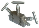 該三閥組與1151(3351)系列電容差壓變送器配套安裝,用于從引壓點將信號引入1151系列差壓變送器正、負測量室,使引壓點與測量室接通或斷開。通過法蘭與變送器直接連接。