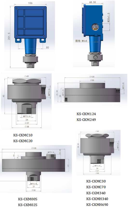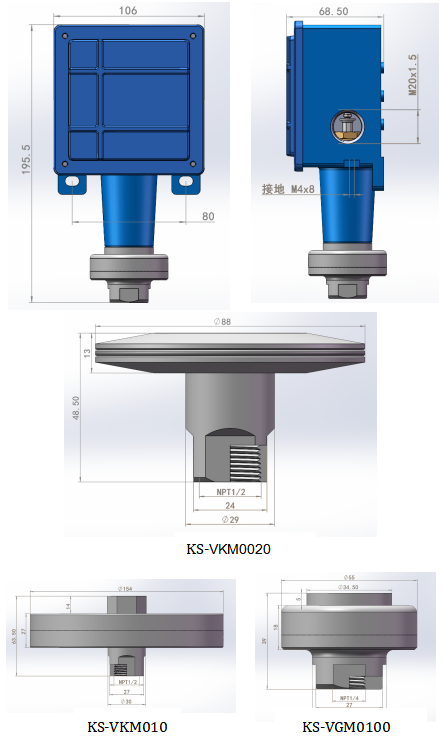 KS-VKM系列:丁腈橡膠及1/2NPTF壓力接口鋁合金材質(其他接口和材質可定制)