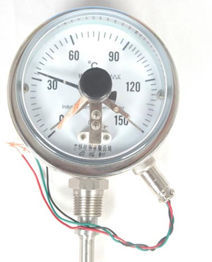 電接點(diǎn)雙金屬溫度計(jì)是利用溫度變化時(shí)帶動(dòng)觸點(diǎn)變化,當(dāng)其與上下限觸點(diǎn)或斷開(kāi)的同時(shí),使電路中的繼電器動(dòng)作,從而自動(dòng)控制及報(bào)警。