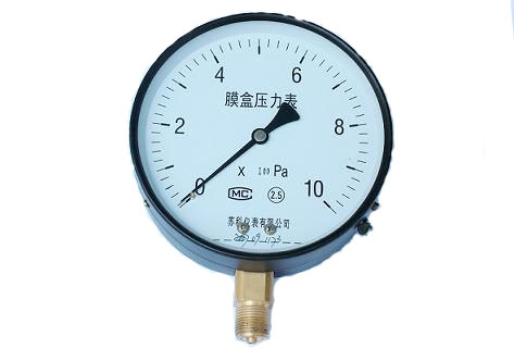 膜盒壓力表由測量系統(包括接頭,波紋膜盒等),傳動機構(包括拔桿機構,齒輪傳動機構),指示部件(包括指針與度盤)和外殼(包括表殼、襯圈和表玻璃)所組成。