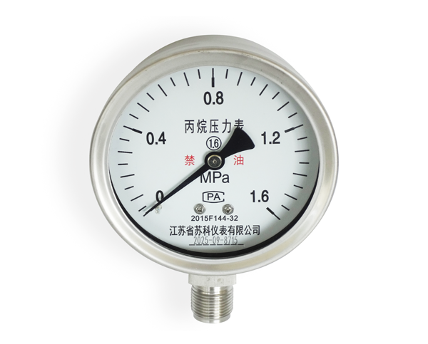 丙烷壓力表適用于測量密閉容器或者管道內(nèi)丙烷氣體介質(zhì)的壓力的場合,丙烷壓力表由導(dǎo)壓系統(tǒng)、齒輪傳動(dòng)機(jī)構(gòu)、示數(shù)裝置、和外殼所組成。外殼為氣密性結(jié)構(gòu),能有效的保護(hù)內(nèi)部機(jī)件免受環(huán)境影響。